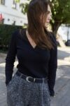 Klasyczny basic z długim rękawem o prostym kroju w czarnym kolorze, wykonany z grubszej bawełny w gruby prążek. Dekolt w serek optycznie wydłuża szyję. Must Have w każdej szafie. Dodatek elastanu sprawia, że idealnie dopasuje się do każdej sylwetki. Jest idealnym uzupełnieniem każdej stylizacji. Pasuje zarówno do spodni, jak i spódnic. Idealnie zaprezentuje się do marynarki lub luźnej koszuli. To model, który znakomicie prezentuje się z prostymi jeansami, jak i z zawadiacką rozkloszowaną spódnicą. Naturalny materiał sprawia, że bluzka perfekcyjnie nadaje się na każdą porę roku. Występuje w dwóch rozmiarach XS/S i M/L. Wyprodukowana w Polsce, w kameralnej pracowni na warszawskiej Pradze.